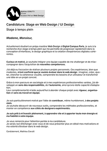 Ce début d'expérience n'en reste pas moins enrichissant: en quelques mois, je me suis découvert une passion et une volonté tenace de créer et de développer en web design, ce qui me motive à aiguiser ma capacité d'appréhension sur ces multiples outils numériques et créatifs.
